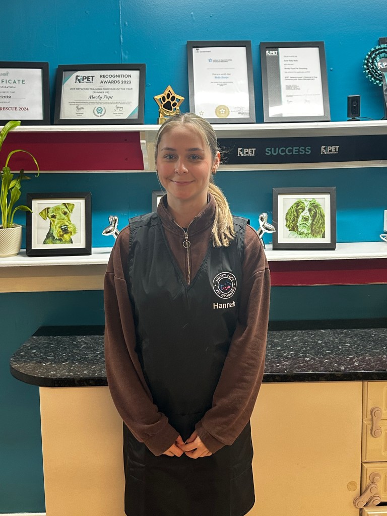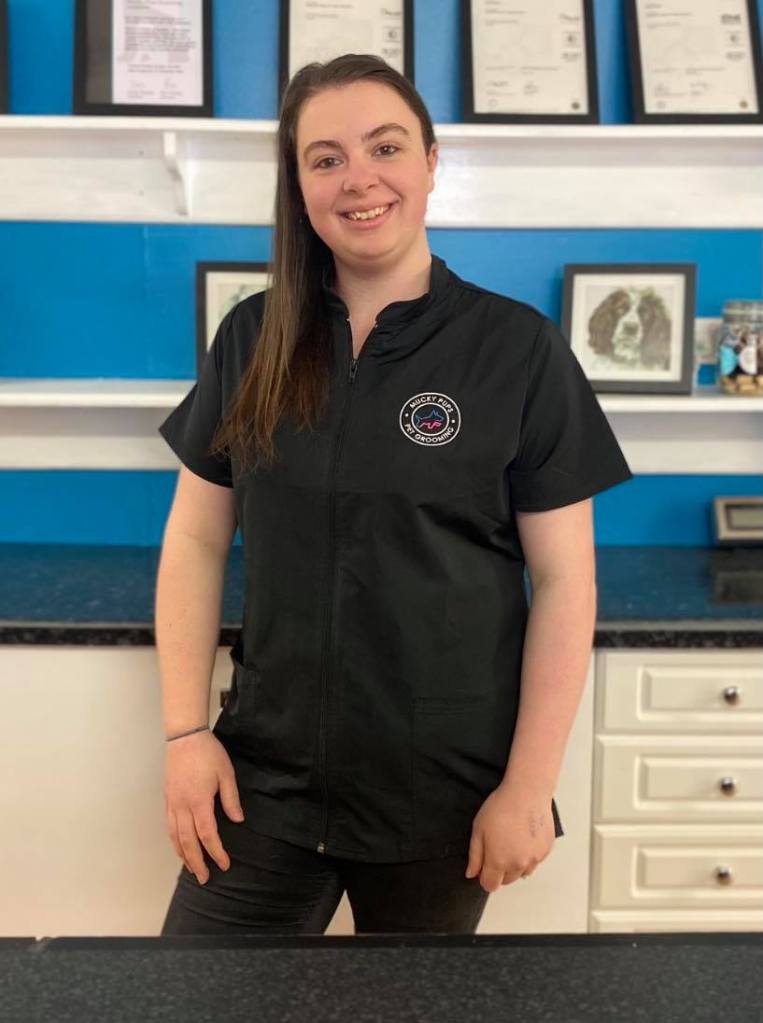 Hannah joined Mucky Pups part time in November 2024, and now is a full time member of the team! Hannah has completed her Level 3 Diploma in Dog Grooming and Salon Management, and also wants to become a tutor in the training academy in the future. Hannah has become a friendly face in the salon with customers and dogs and has a beautiful positive and patient approach with some of our more nervous dogs. Hannah has a Shihtzu at home called Reggie